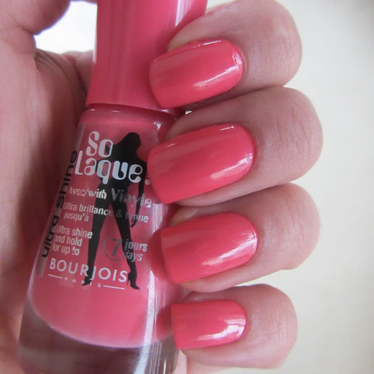 2 fois plus de vinyle pour un résultat laque intense d’une brillance absolue ! La formule de So Laque Ultra Shine est enrichie avec 2 fois plus de vinyle et un complexe de résines haute réflexion, pour des ongles d’une brillance absolue. L’agent fixateur contenu dans la formule arme les ongles d’un film souple, ultra brillant et résistant pour une tenue jusqu’ à 7 jours. Une gamme de teintes laque pures, sans nacres ni paillettes, qui donnent à la couleur un aspect lisse et éclatant .